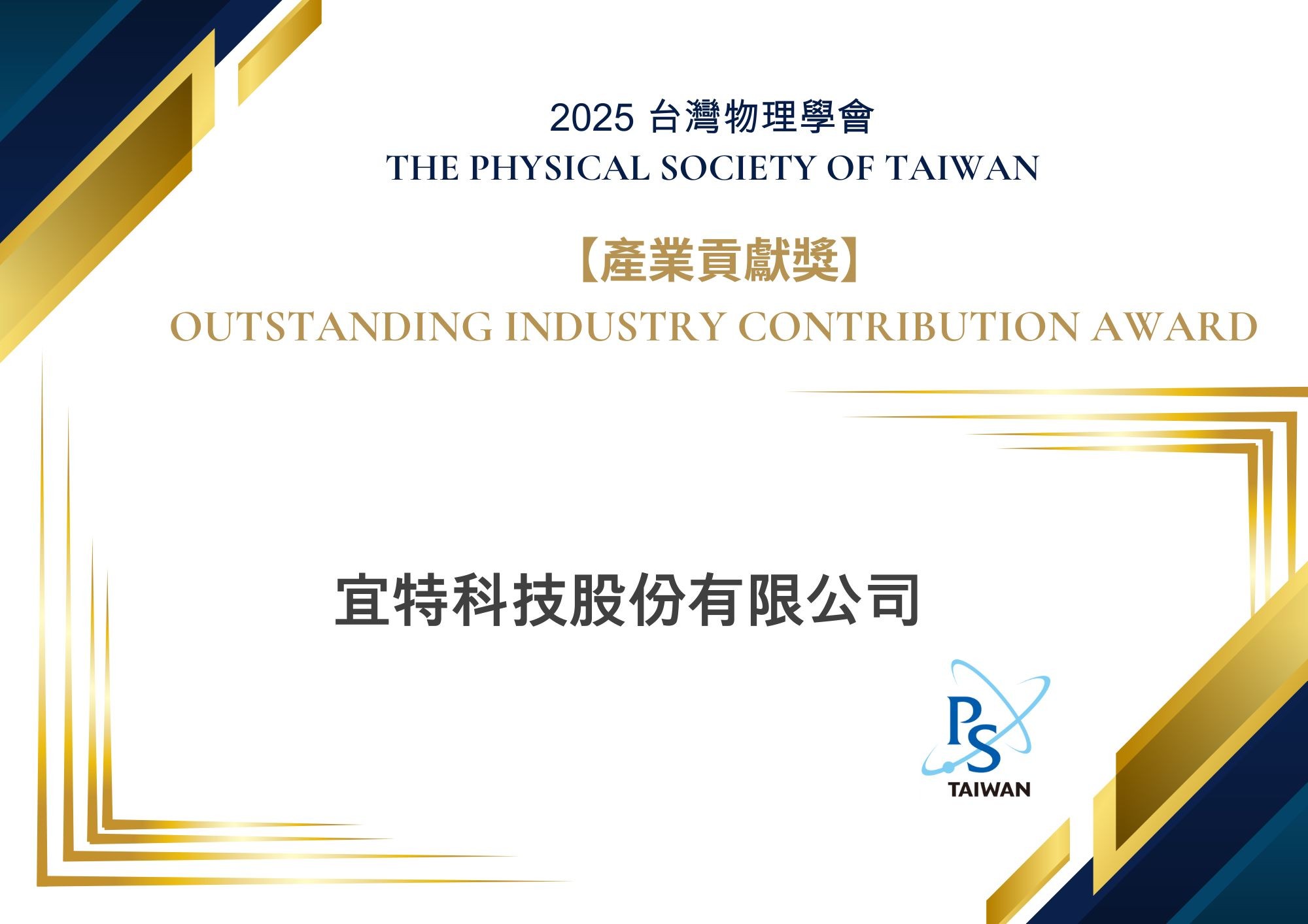 【榮譽成就】宜特科技 榮獲 2025年台灣物理學會產業貢獻獎