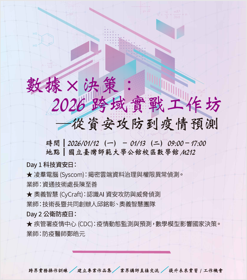 活動網頁:https://sites.google.com/view/2026workshop-winterbreak